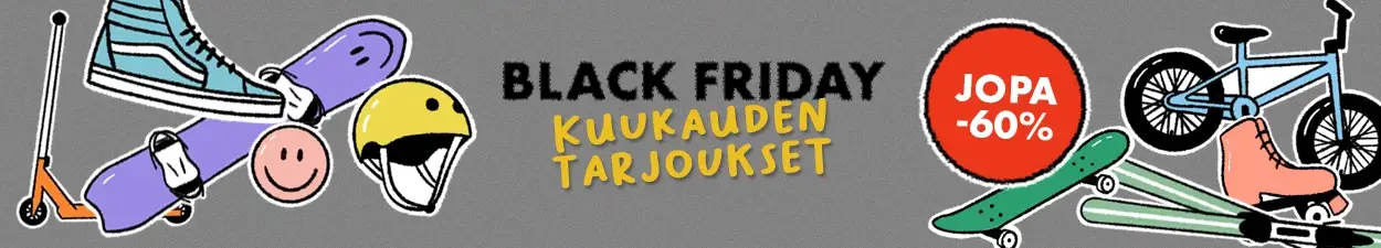 Merkitse kalenteriisi giveback friday 28. marraskuuta! Lisäämme vielä lisää tarjouksia ja eksklusiivisia tuotteita, ja SkatePro lahjoittaa 5 % jokaisesta ostoksesta Make Life Skate Life -järjestölle, joka auttaa rakentamaan skeittiyhteisöjä maailmanlaajuisesti. Osta nyt, säästä paljon ja tee jotain hyvää kerralla!